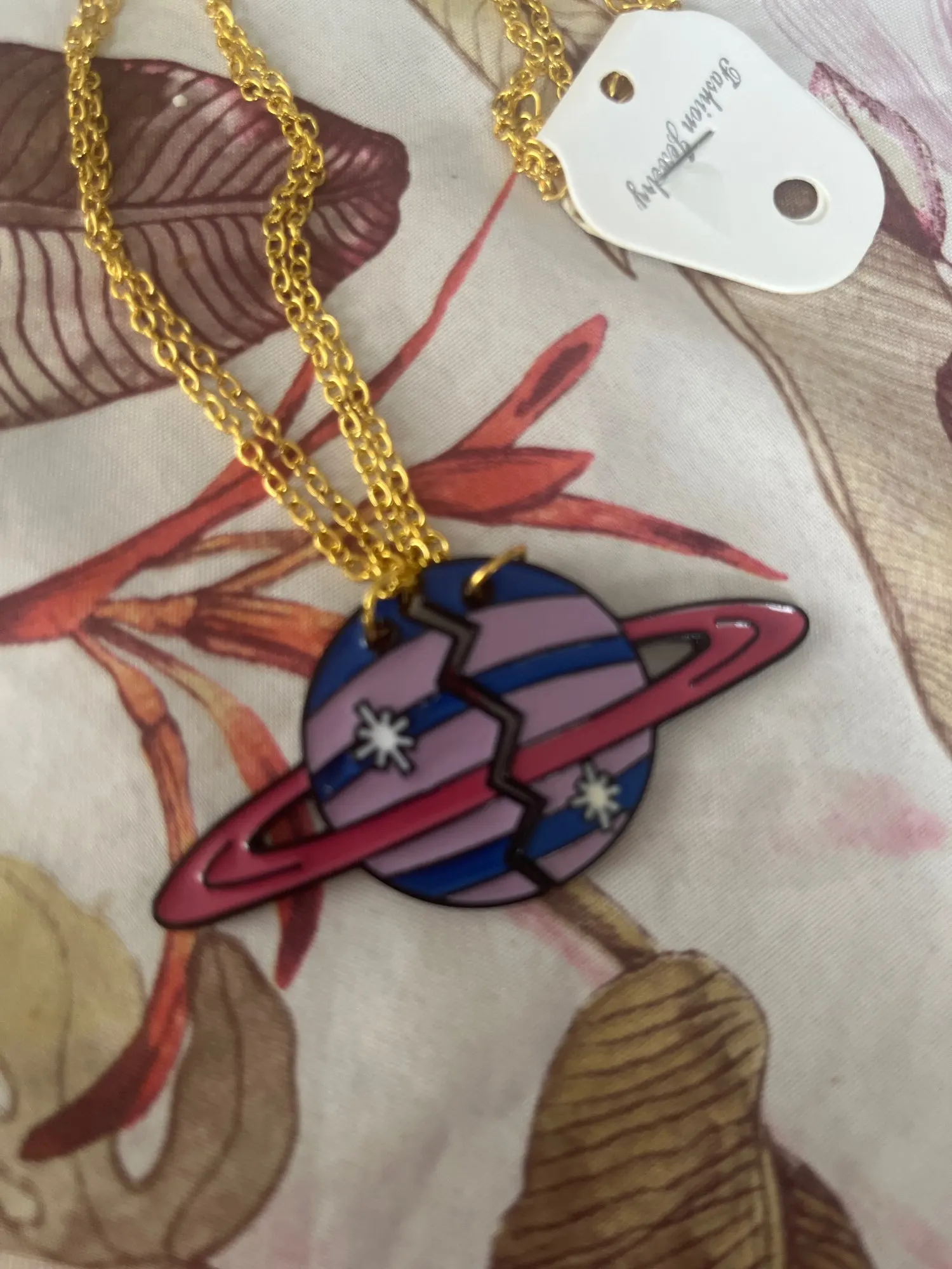 Necklace is in perfect order. The quality is entirely perfect for a child. The planet looks decent. The chain/necklace is cheap/low quality so if you’re trying to be a quirky adult and want to actually wear this, you will most likely want to go buy a better quality chain. I have no complaints about the purchase, even with my critiques of it. I just want others to be aware of what they’re getting before they get it because it definitely feels like toy jewelry for children (and that is exactly who I plan to give it to). I’m quite happy with it, so thank you very much!