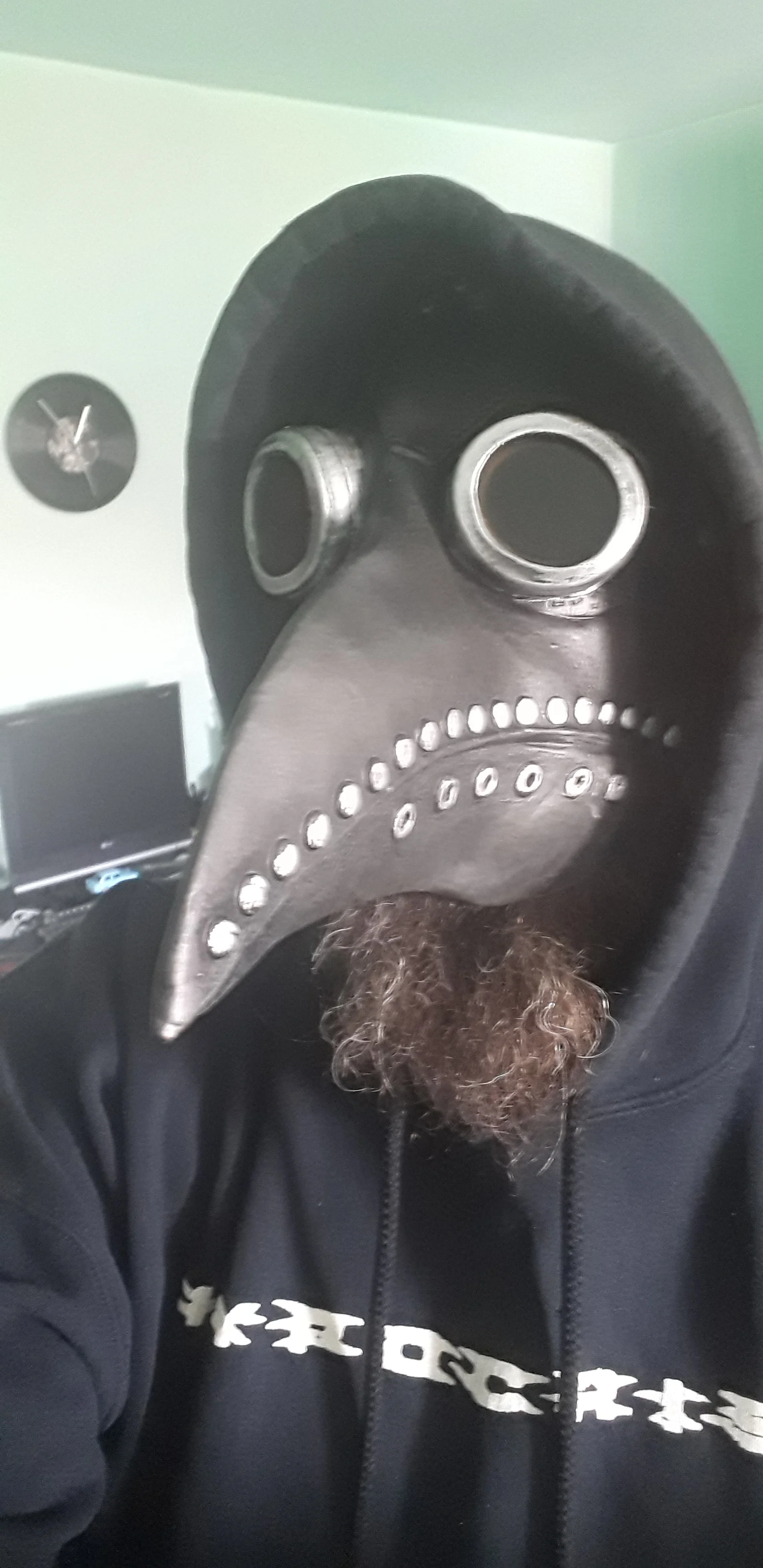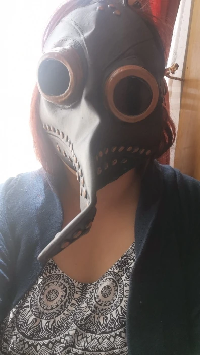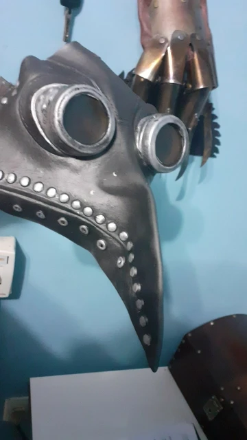 The mask is not metallic-looking as pictured. Otherwise it looks and fits fine. I'll repaint it with acrylics to get that aged-copper look I want. Other than that, I'm happy with this seller. The mask was not expensive and arrived in fine condition sooner than expected.