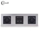 COSWALL Silver Stainless Steel Panel Black Double Wall EU Socket + Dual USB Charging Port + TV Jack with CAT5E Internet Port
