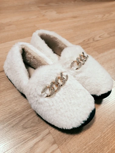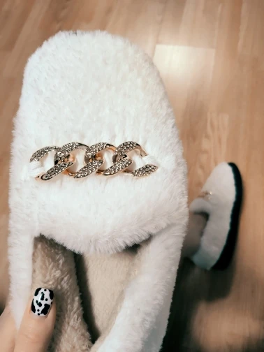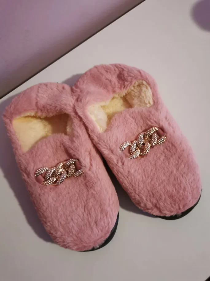 COVOYYAR 2022 Winter Fluffy Women Shoes Fashion Chain Warm Fur Flat Shoes Woman Indoor Slippers Causal Home Lady Shoes WFS4000