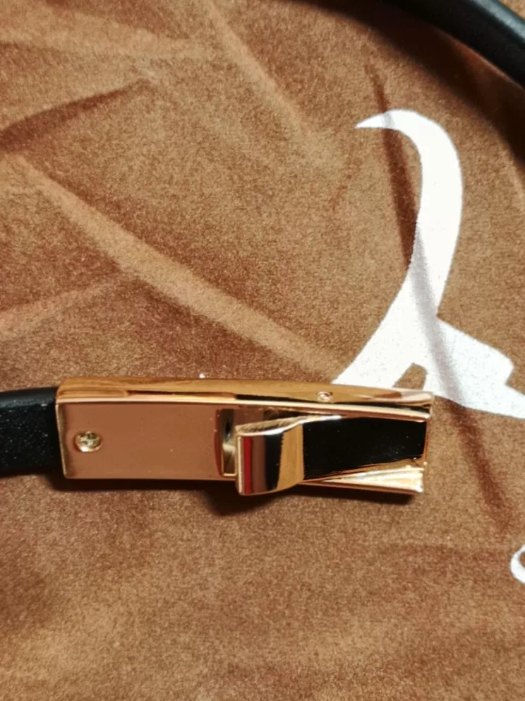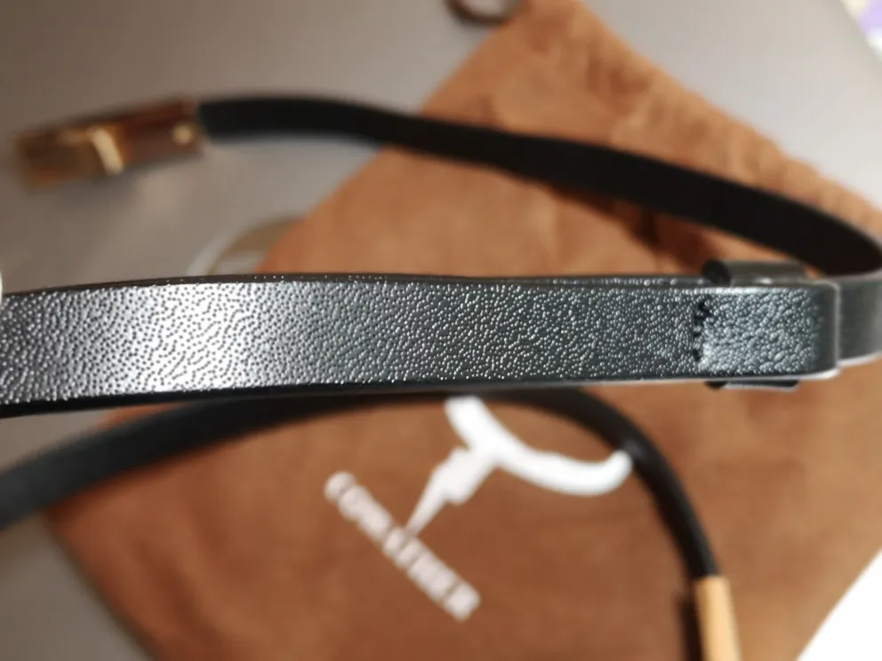 I bought a white belt. It's 1 cm wide and as it's adjustable it can fit anybody with the waist up to 96 cm. The belt looks and feels great. The Seller provided a small storage bag for the belt as well as a rubber wrist band with the shop logo. The order was dispatched very quickly and I received it 2 weeks after placing it.