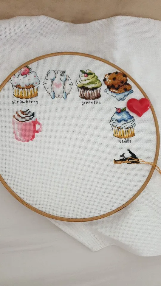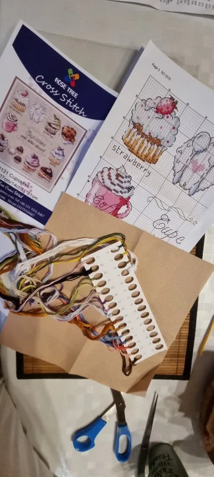 There was one problem. There were not enough threads of black. There were only two whole threads, so 12 strands. Those two were listed correct on the pattern, but since you need them for all the lines for every item it was very insufficient. Luckely it was black, so that is relatively easy to replace. Maybe as a tip for next buyers, change is to 4 or 5.