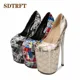 Crossdresser Stiletto zapatos mujer Plataforms Pumps Fashion Show ladies 22cm thin high heels women's Patent Leather Party shoes
