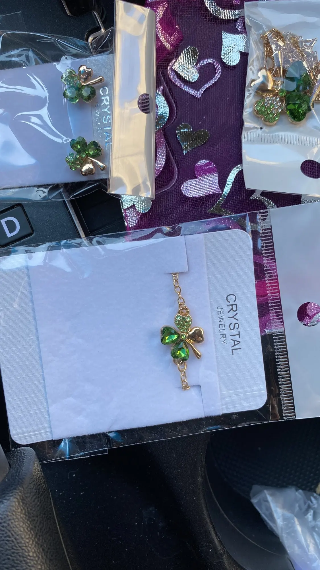 Crystal Clover 4 Leaf leaves heart pendant Jewelry sets necklace earrings bracelet women lover cute romantic gifts