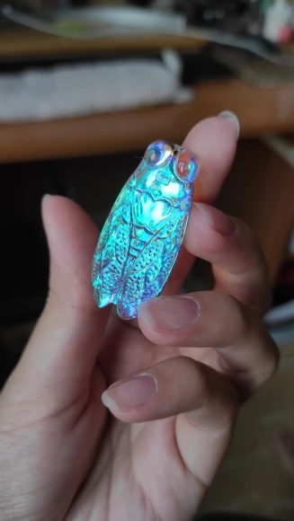 just as pictured. about the length of my pinky finger. super cute.