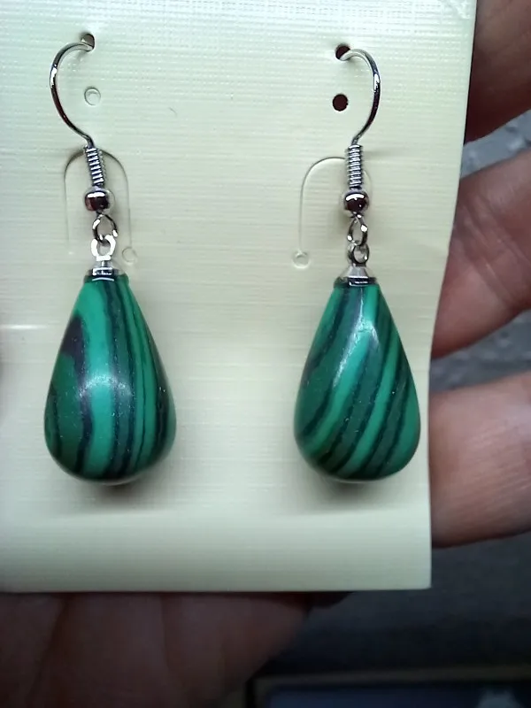 Vintage Pear Shape Turquoise Malachite Dangle Earring