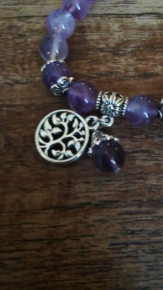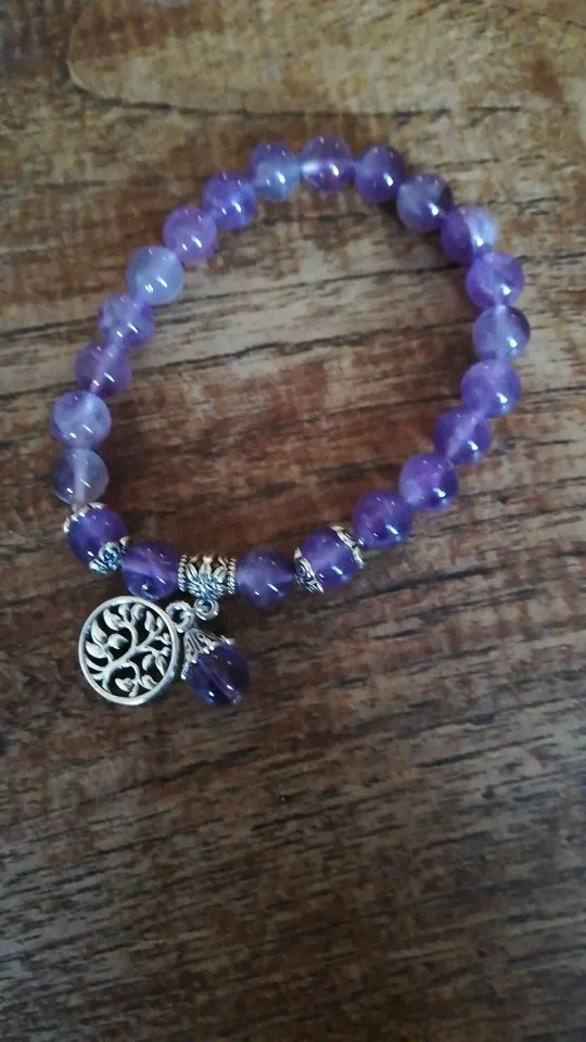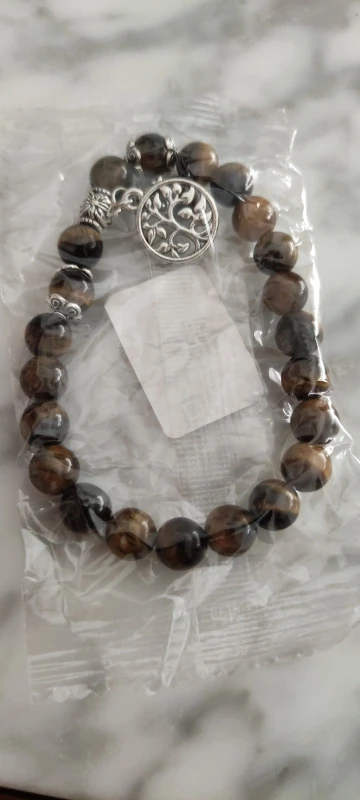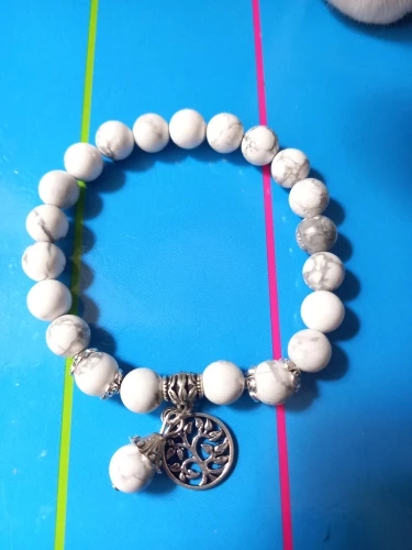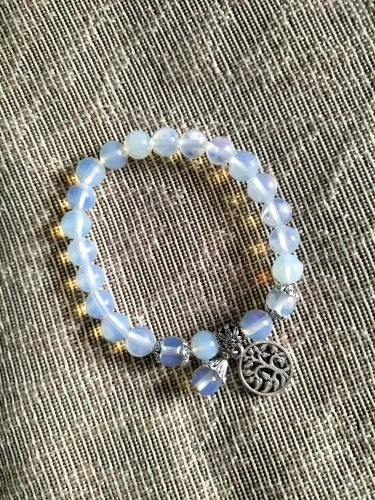 Natural Stone , 8mm Round Beads , Tree of Life Charms , Elastic