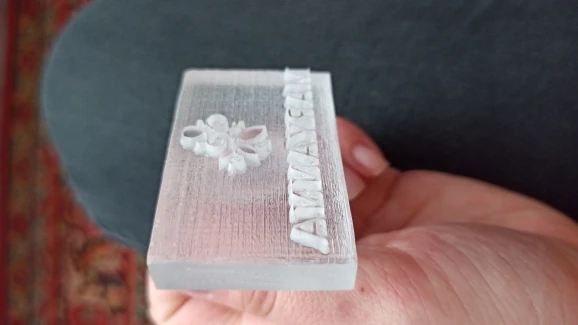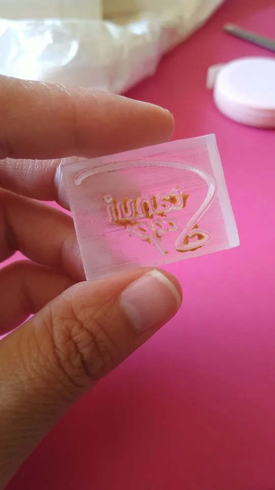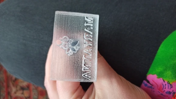 Very bad Quality we did use the stamp once and directly the stamp is broken see pictures so dont buy a soap stamp at this supplier
