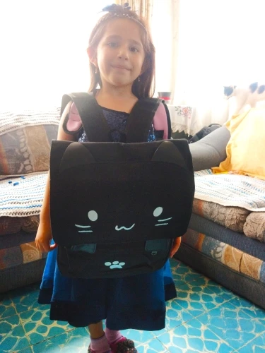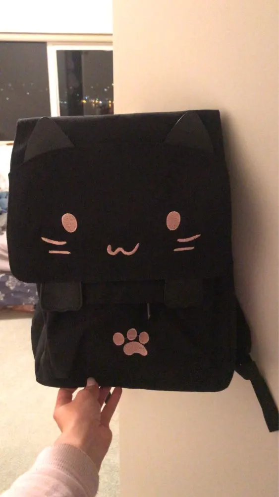 Very cute, looks just like the picture. It is a pretty big backpack as well, the pouch on the front is also very usefull. Really happy with this, only took maybe 2 weeks to arrive