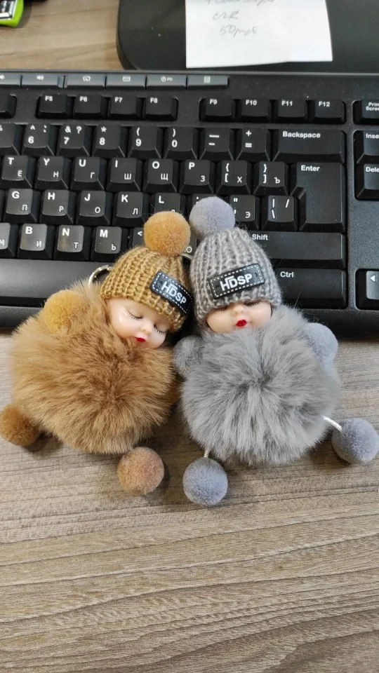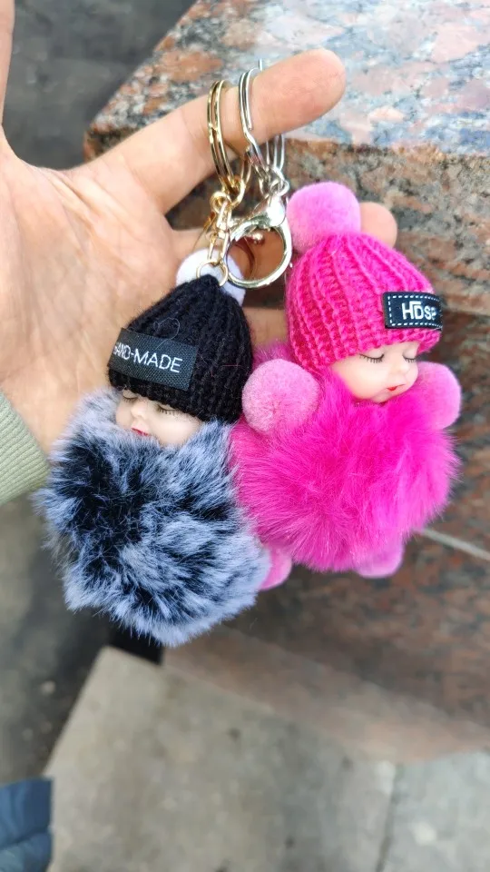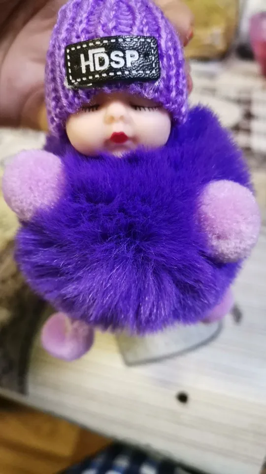 Cute Cartoon Sleeping Doll Keychain Fur Ball Plush KeyChain Keyring Women Handbag Car Key Holder Bag Pendant Toys for Kids Gift
