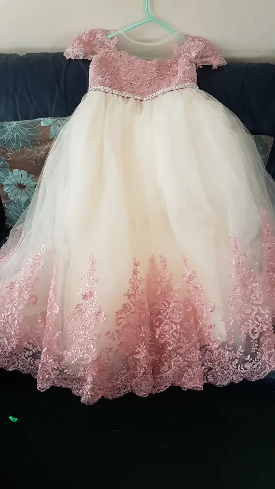 Cute Pink Lace flower girl dress baby toddler tulle birthday gown kids clothes for wedding and party short sleeve