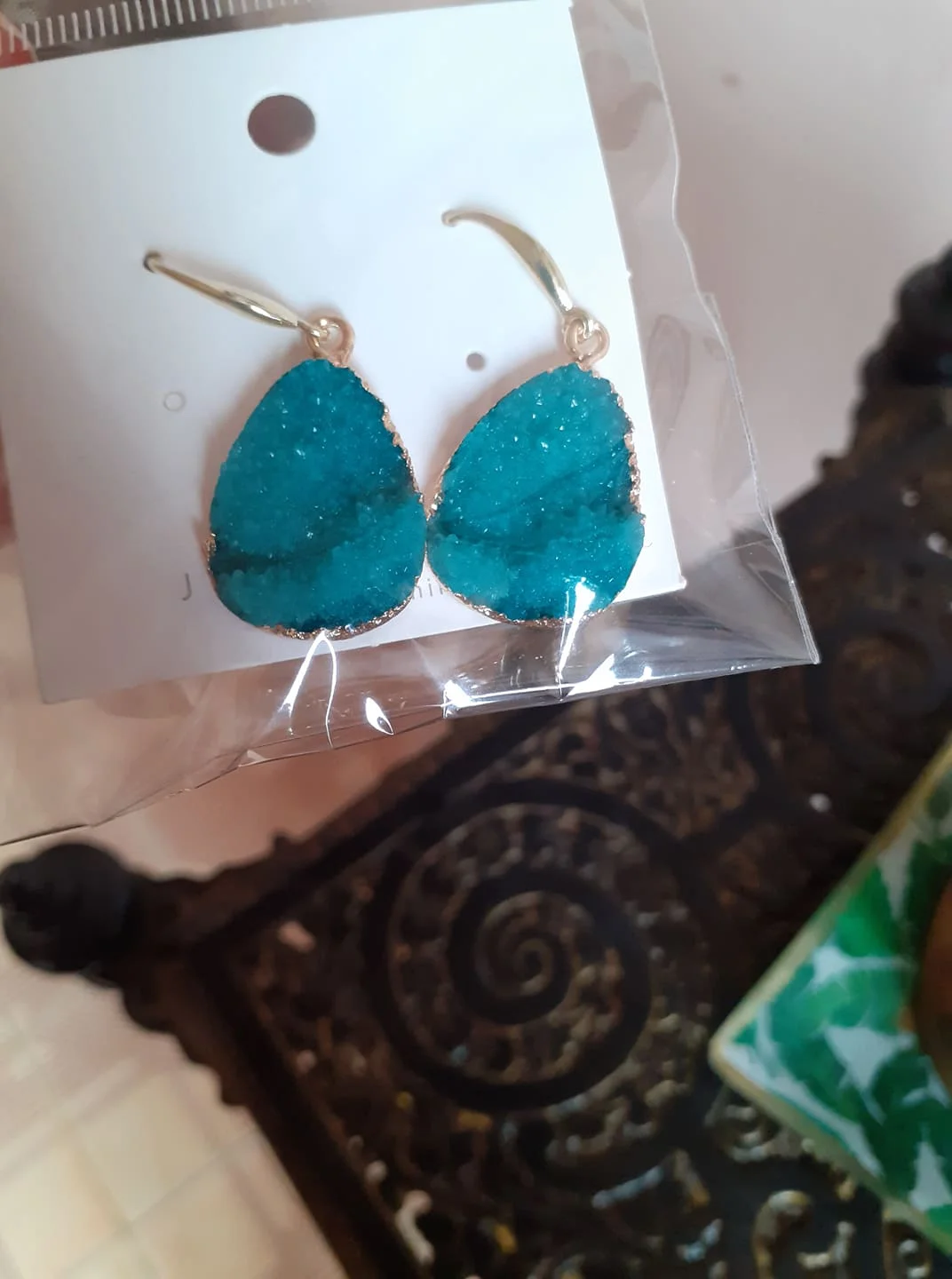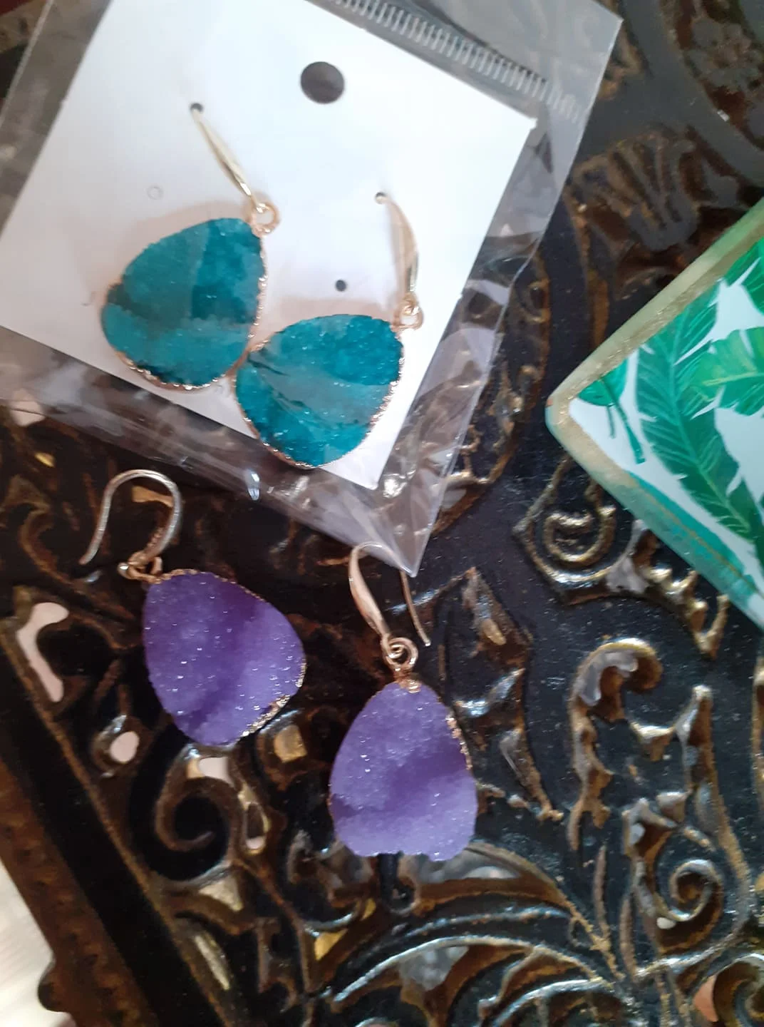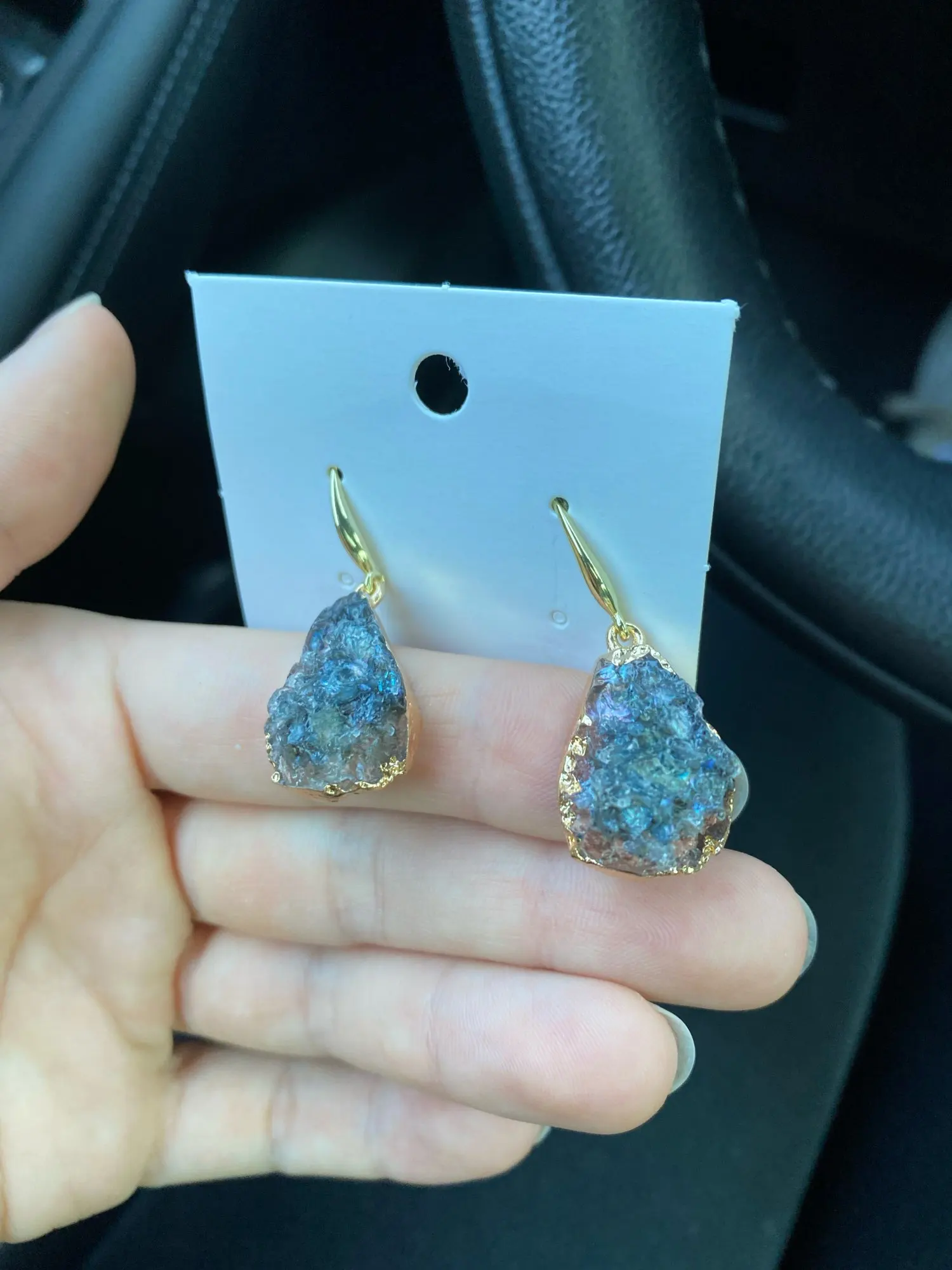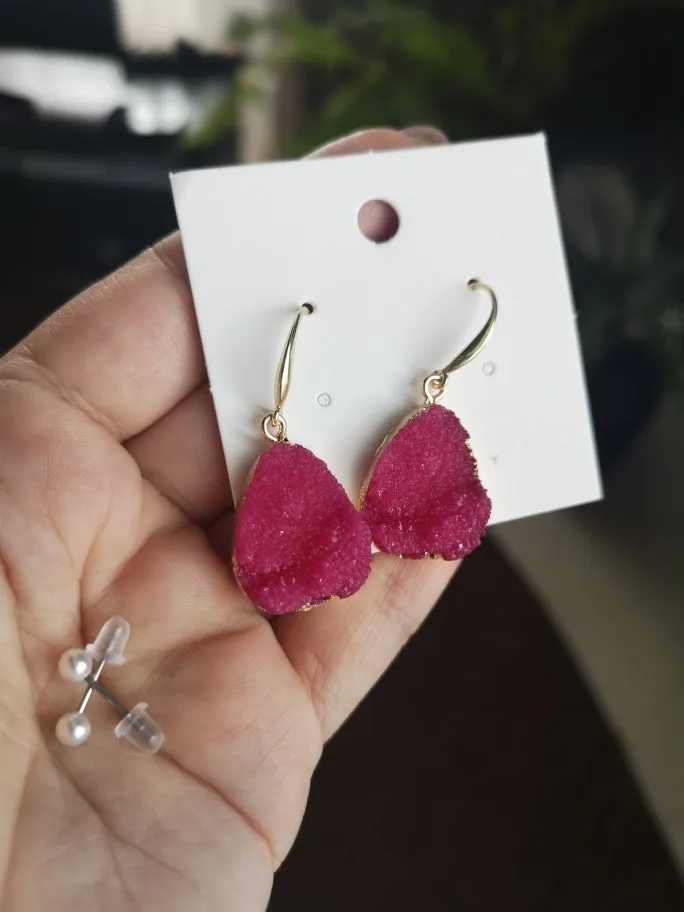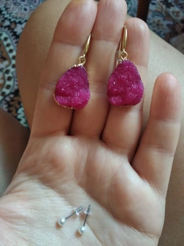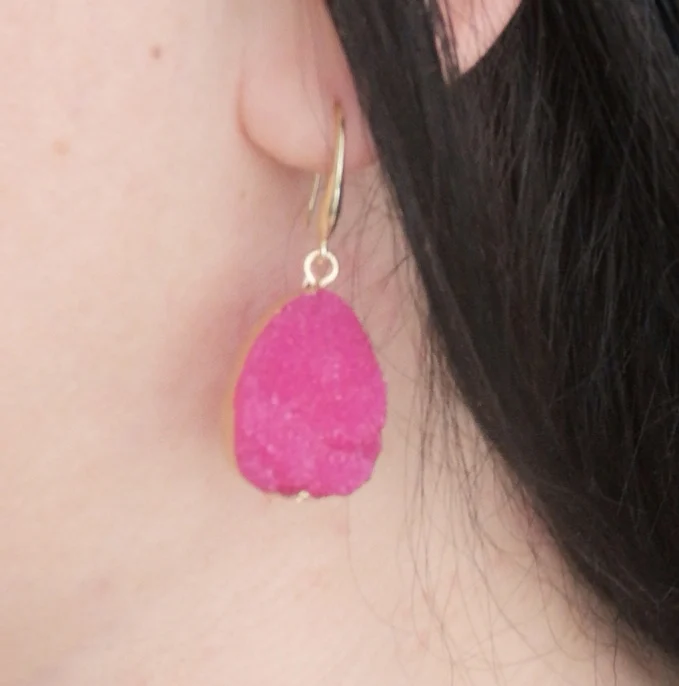 CXQD 1 Pair European Jewelry Colorful Water Drop Dangle Earrings Pink Black Resin Stone Drusy Earrings For Women Jewelry YM0071