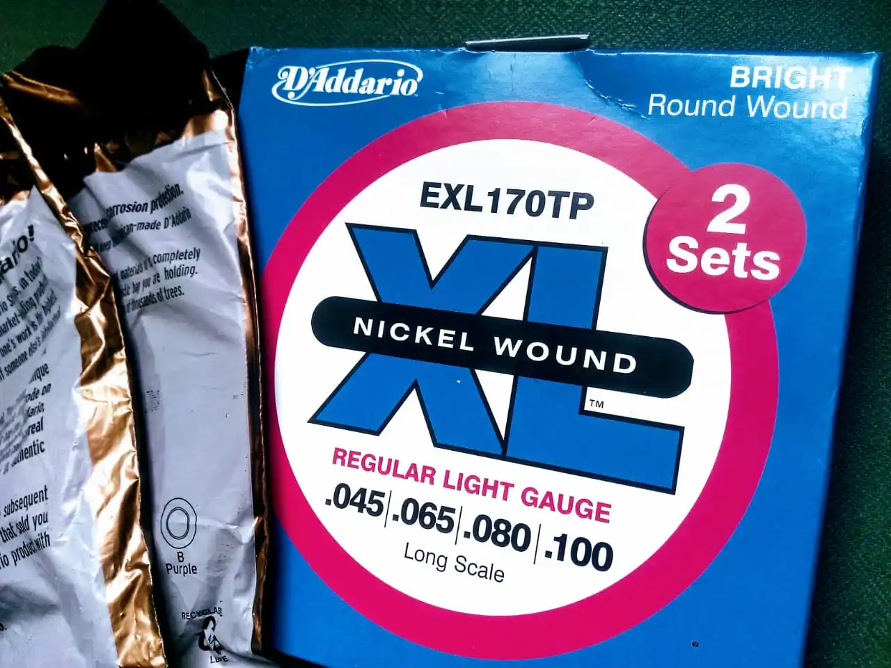 D'addario Nickel Wound Bass Strings, Long Scale, EXL160tp EXL170tp, 2 sets