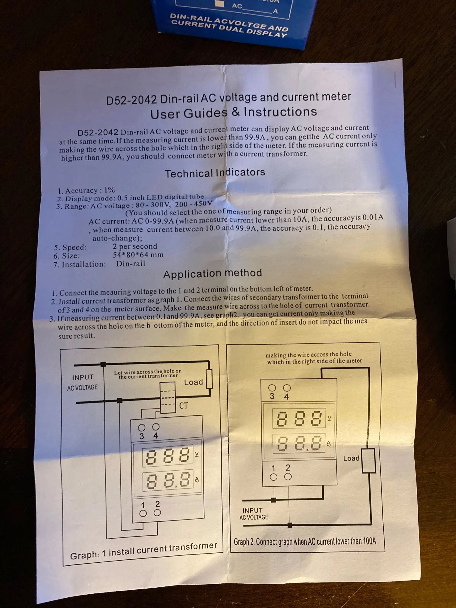 D52-2042 Din Rail Voltmeter Ammeter AC80-300V AC200V-450V Digital AC Voltmeter Voltage Current Meter LED Display Electric Meter