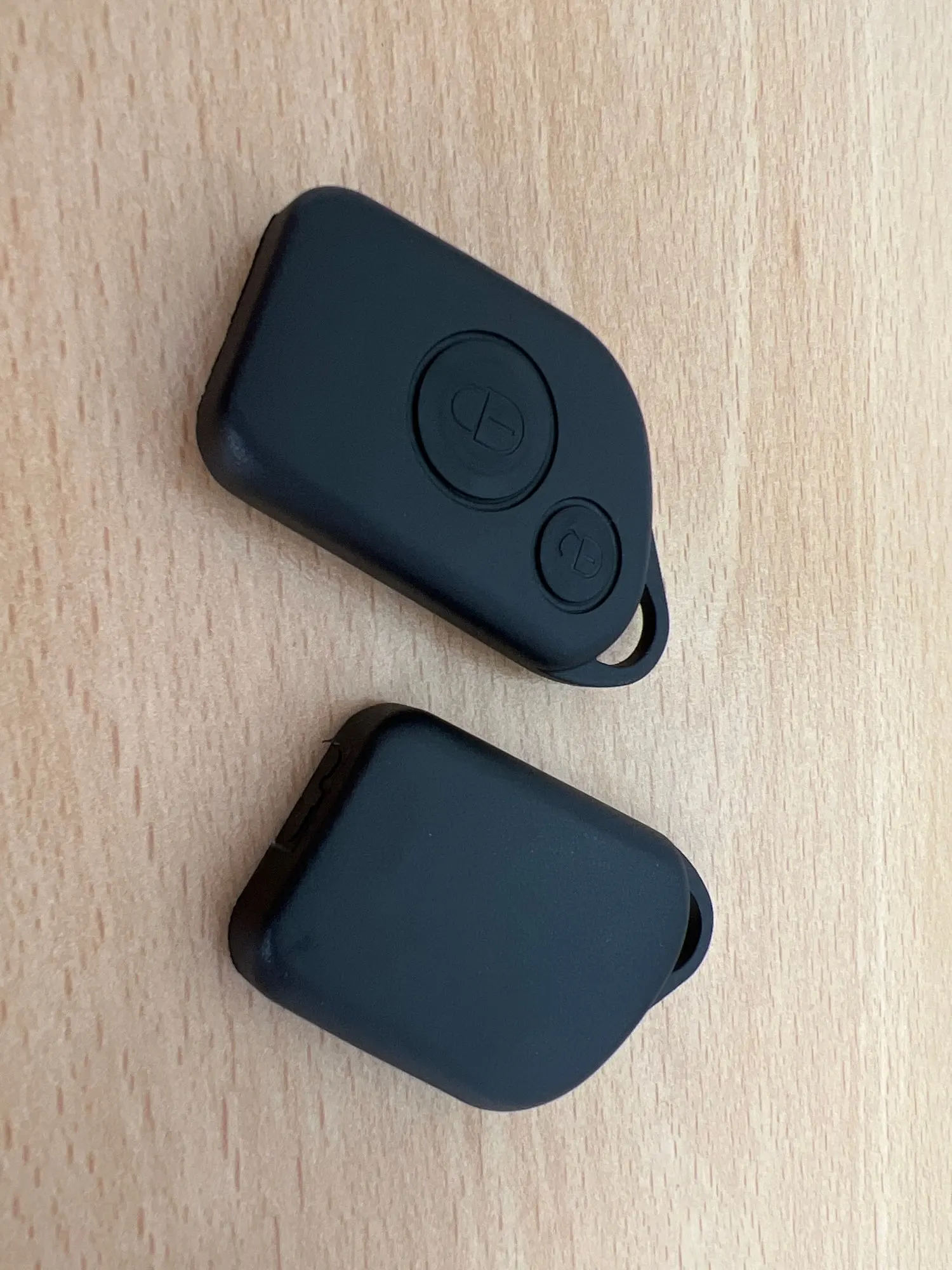 Hard plastic, almost useless. My wife is not able to press smaller button hard enough to activate.