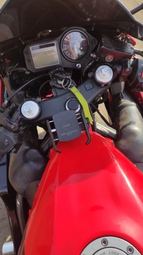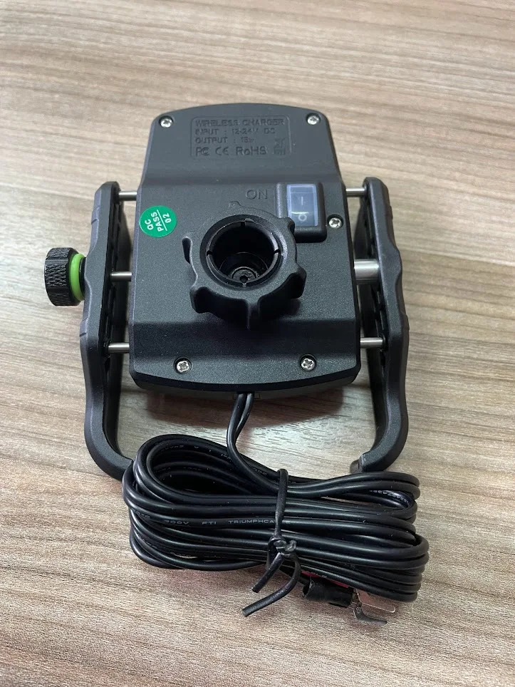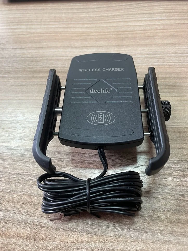 Arrived properly packed and undamaged. This is a second one because the first one works very well on 1 of my bikes. This will be installed on another. I love the wireless charger so you don't need any connections to the phone even in the rain. Fast delivery again like the first time. Good seller.