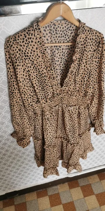 DICLOUD Sexy Leopard Print V Neck Mini Party Dress Women Long Sleeve 2022 Spring Ruffle Vintage Dresses Elegant Ladies Clothing