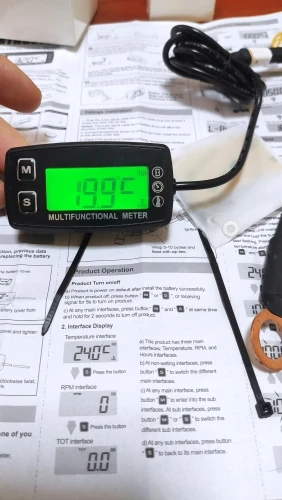 Digital Tach Hour Meter Theomometer Temp Meter for Gas Engine Motorcycle Marine Jet Ski Buggy Tractor Pit Bike Paramotor Buuger