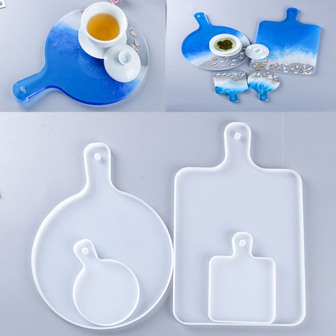 DIY Resin Mold Round Compote Handmade Crystal Epoxy Coaster Serving Board Tray with Handle Silicone Fruit Cakes Plate Mould Kits