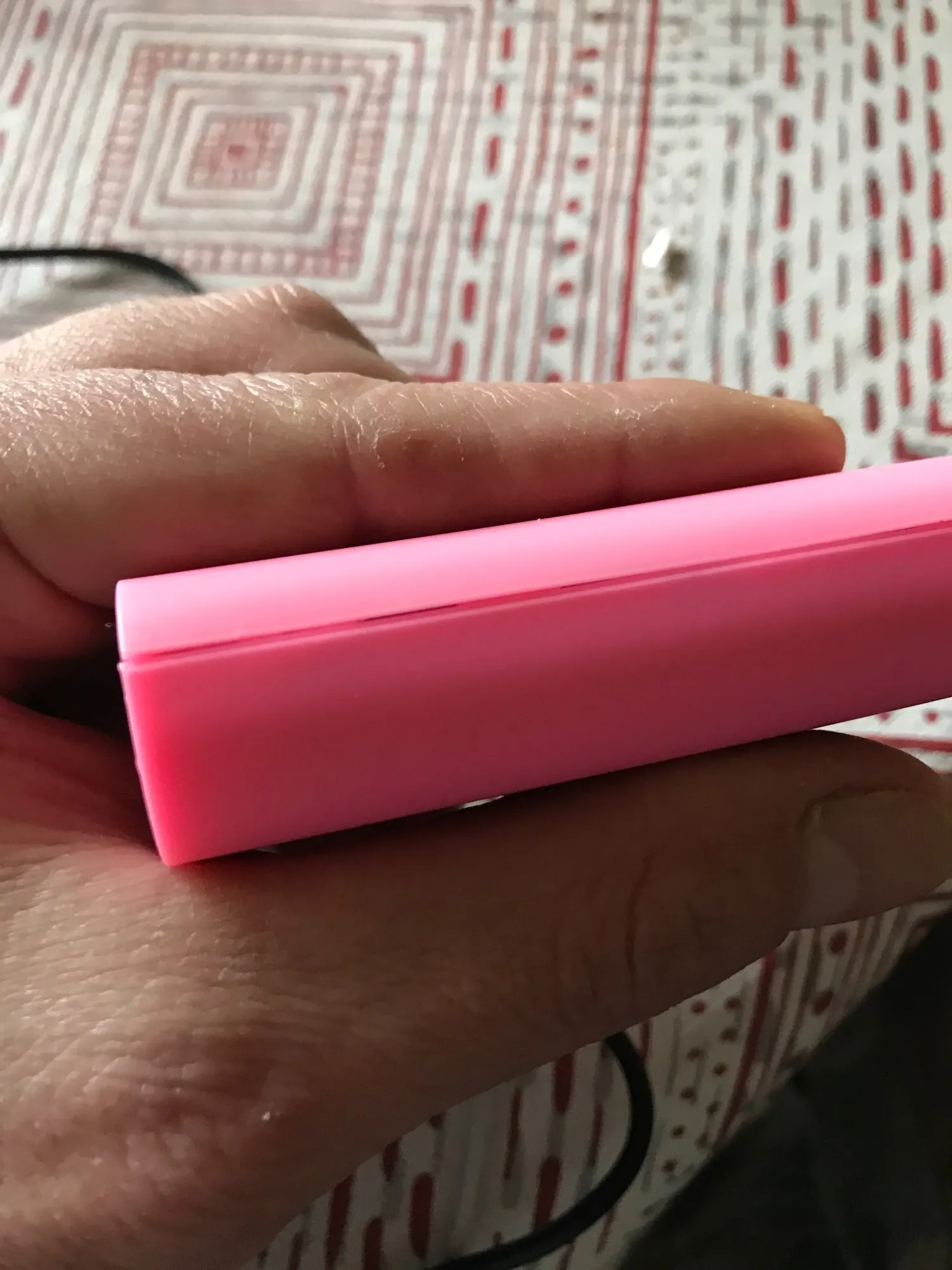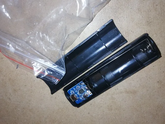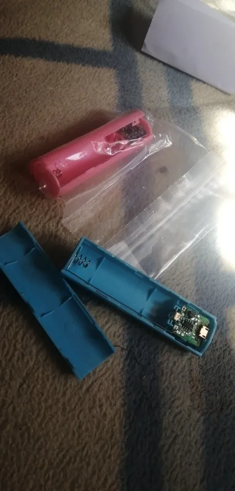 One has a blue light on discharge, the other doesn't. The one that does flashes on low battery. Both have red intermittent lights on charging. Good plastic construction.