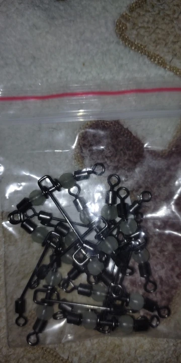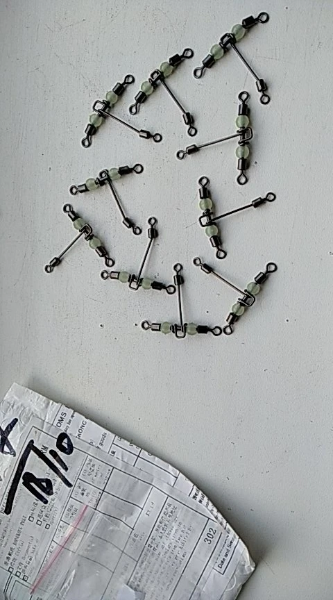 DNDYUJU 10pc 3way luminous T-shape cross-line rolling swivel with pearl beads fishing swivels fishhooks fishing connector