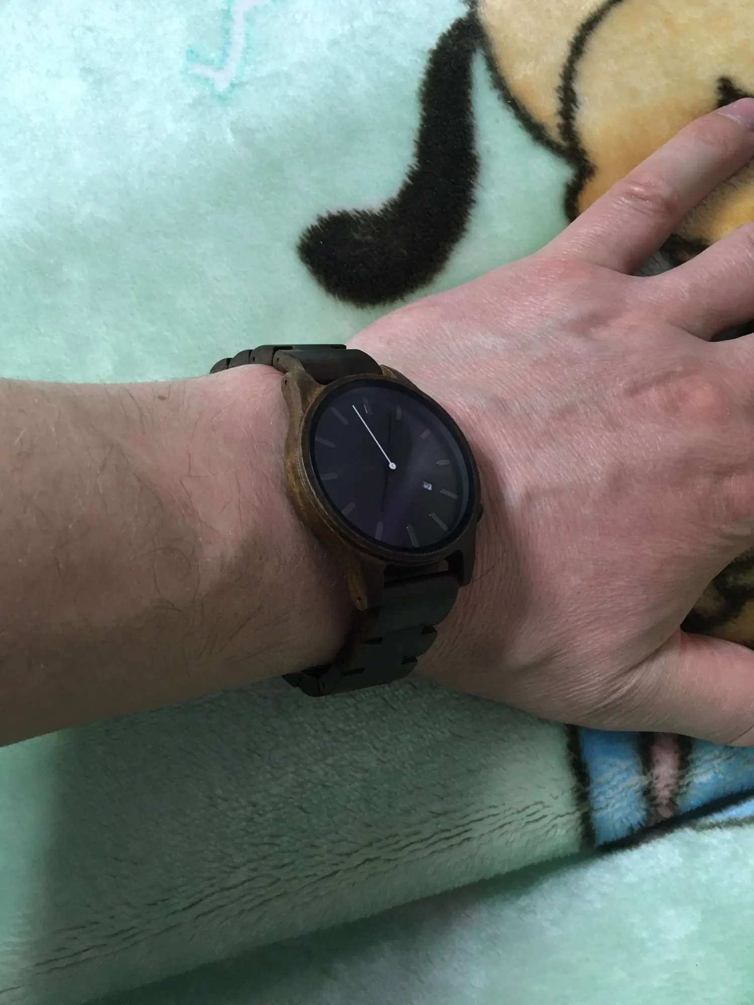 Waauw beautiful watch! Very nice quality! Just like the picture. My picture it looks darker but in real it is like chocolat brown. Shipping is 2,5 week perfect!