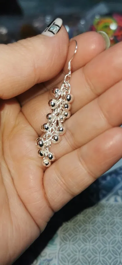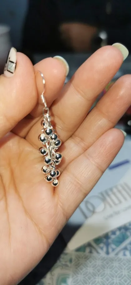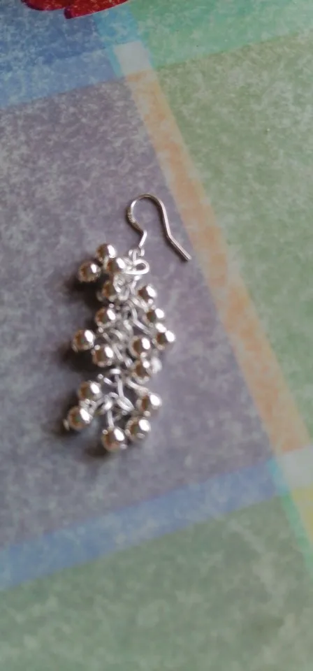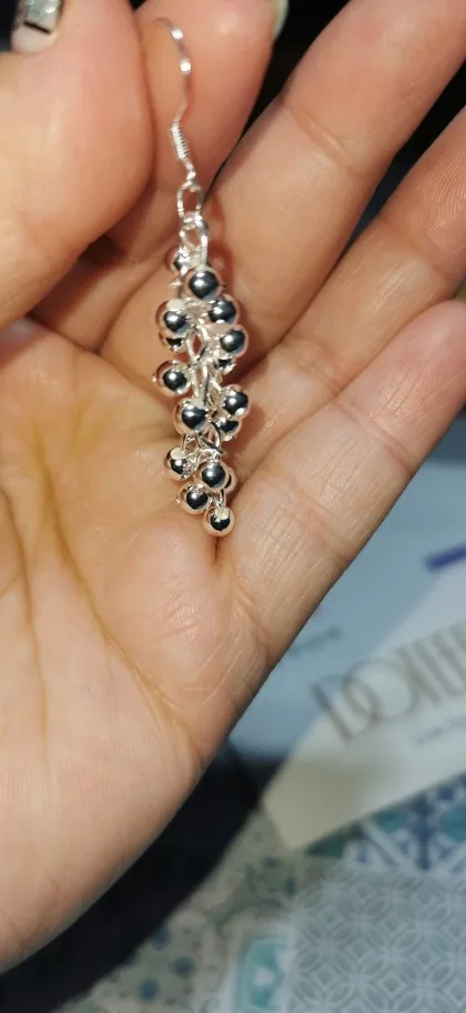 DOTEFFIL 925 Sterling Silver Smooth Grape Bead Earrings Fashion Woman Charm Earrings Wedding Jewelry