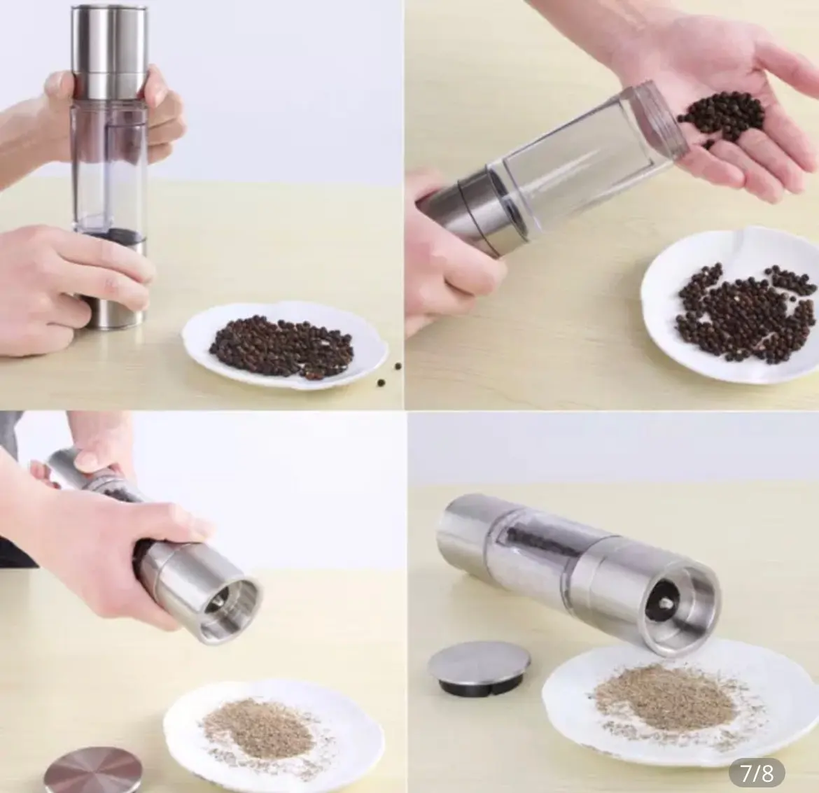 Double-headed pepper grinder 2 in 1 Stainless Steel Manual Salt Pepper Mill Grinder Seasoning Grinding for Cooking Restaurants