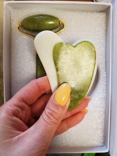 Very nice hear roller! Rolls smoothly and arrived faster than expected to Chile, just within 2 weeks. It's made from real stone, you can feel this from the cool temperature as it touches your skin. Though the gua Sha could maybe have been polished a bit smoother. In the overall a very good buy.
