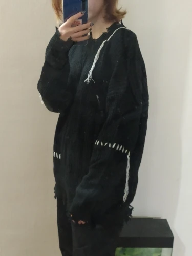 Drawstring Sweater Autumn And Winter New Korean Version Ins Dark Wild Loose Loose Lazy Wind Hole Men And Women Couple Sweater