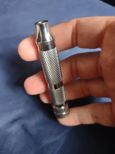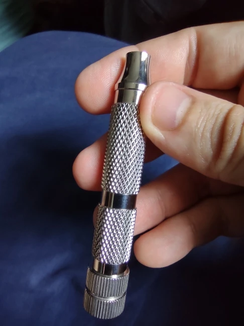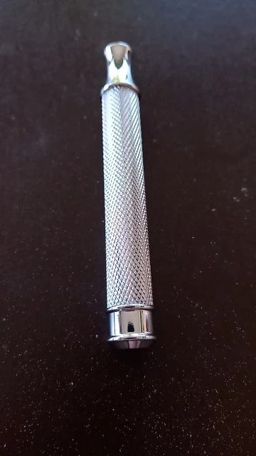 The handle I received is beautiful and heavy, but the knurling almost feels like it has a coat of plastic on it so that it is too smooth. I actually tried to light it with a lighter because I was convinced it had some sort of plastic coating. Very strange. Not a bad purchase for the price, but the knurling could be better to match the good looks.