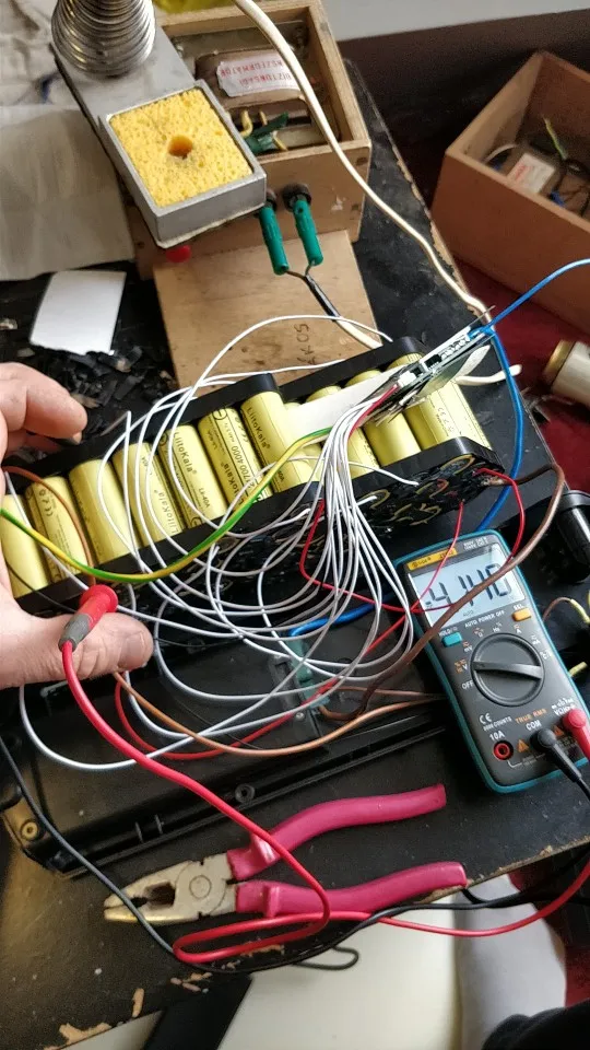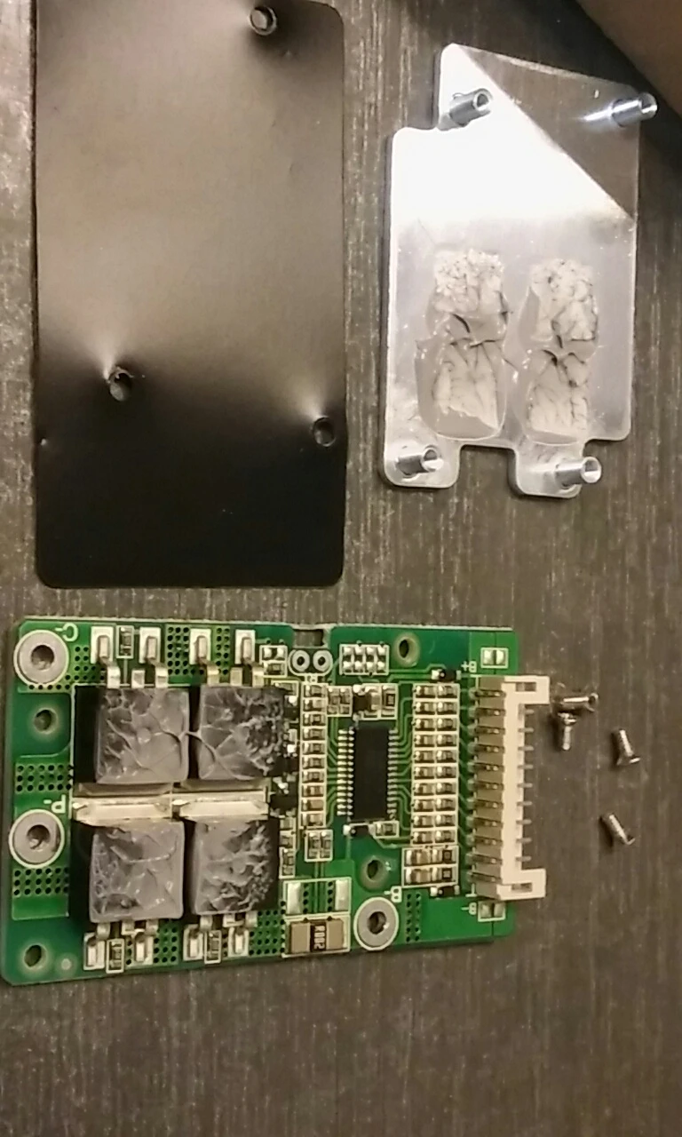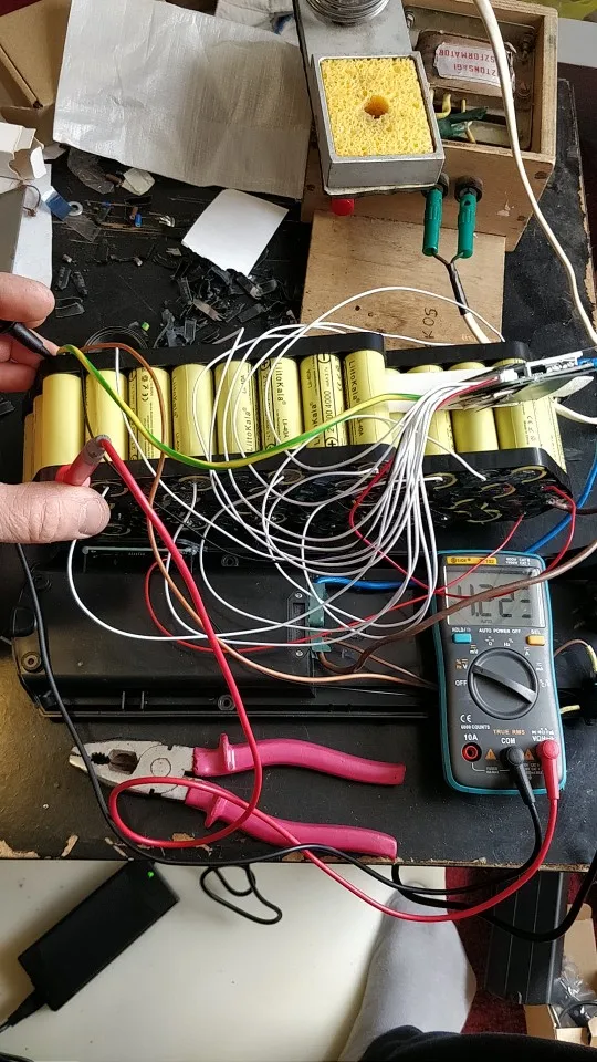 BMS apparently without balancing, at the end of the charge the difference in batteries reaches 0.1V But it correctly performs the function of overcharge protection.