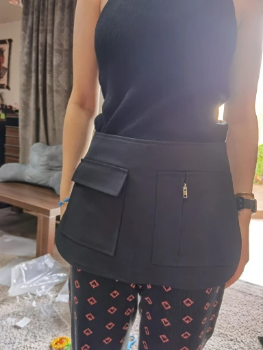 [EAM] Asymmetrical Pockets Split Joing Wide Black Belt Personality Women New Fashion Tide All-match Spring Autumn 2022 1DD3190