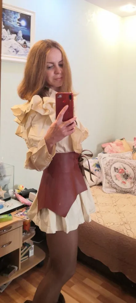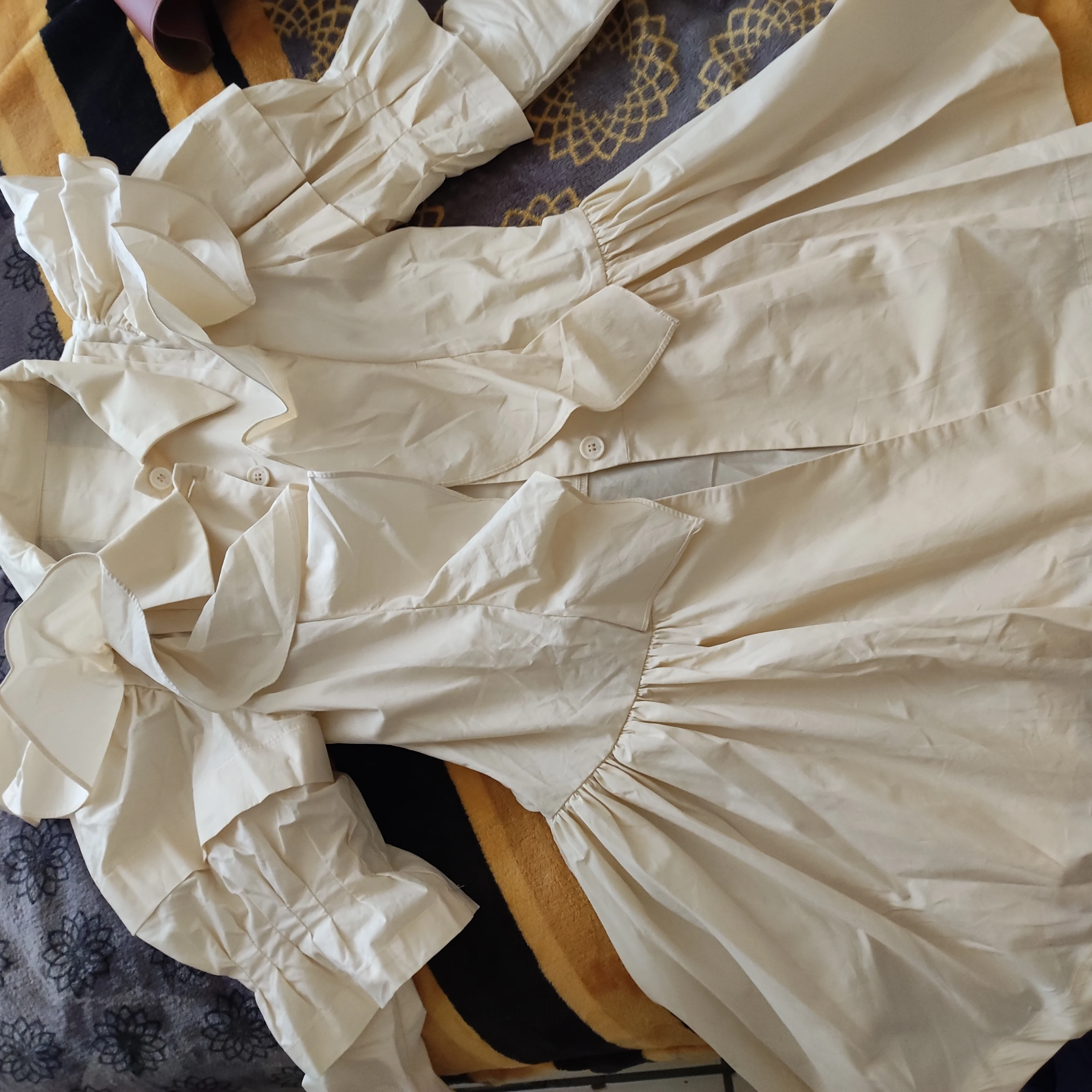 [EAM] Women Yellow Ruffles Split Joint Irregular Shirt Dress New Lapel Long Sleeve Loose Fit Fashion Spring Autumn 2022 1DA401