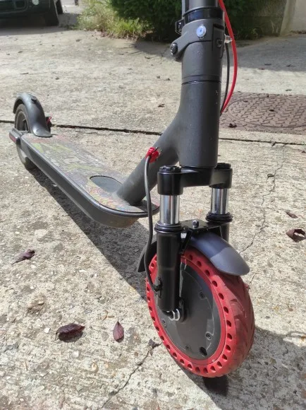 been using this for about 2/3 weeks and it WORKS as it should. I sometimes also ride with my girl which is a total of 130-140 kg and it also works fine. you never know when it will break though. another thing if you search good you will find the ORIGINAL product which looks very similar to this one but the center screws on the original have hinges which move for elasticity. this one is fixed so where does it get its elasticity from? I guess this is why other users have written their product had cracked after 50 + km...