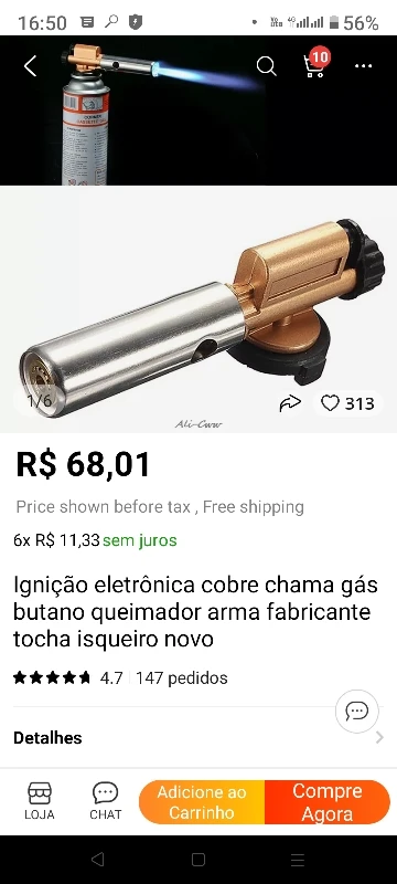 Electronic Ignition Copper Flame Butane Gas Burner Gun Maker Torch Lighter New