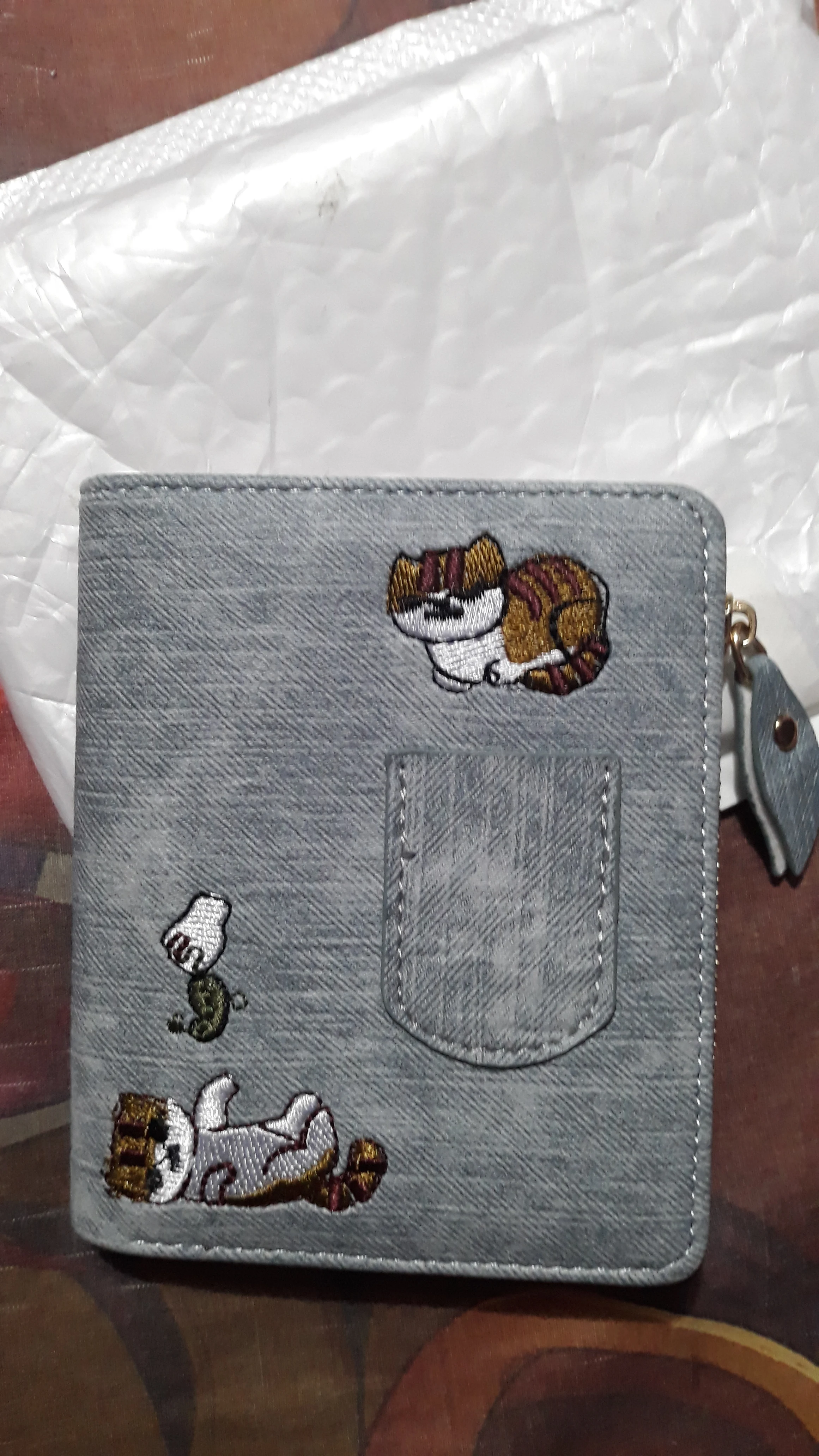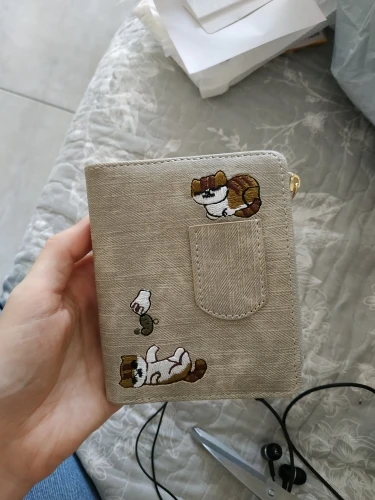 Embroidery Cat Women Short Wallet Zipper Coin Purse Short Women's Wallet Kawaii Mini Cards Holder Clutch for Girl Carteras Mujer