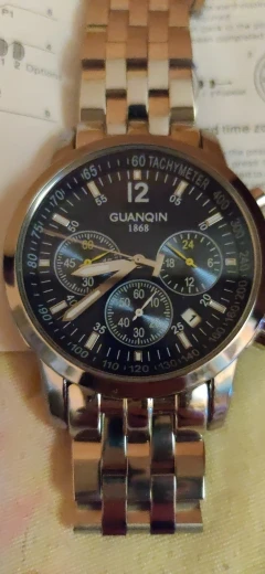 Hello, today came the 2 o'clock GUANQIN 1868 in black, very nice. Now have blue and black in quartz. Good packaging, thank you!