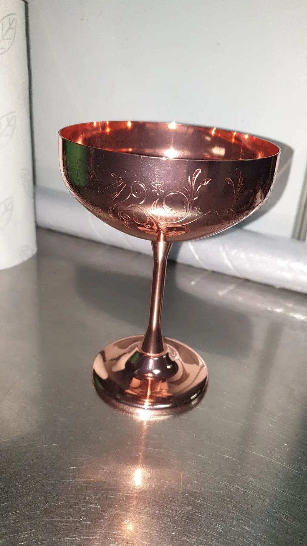 Etching Martini Cocktail Glasses,Copper Plated Stainless Steel