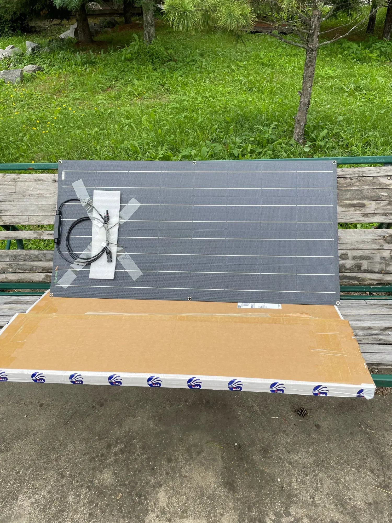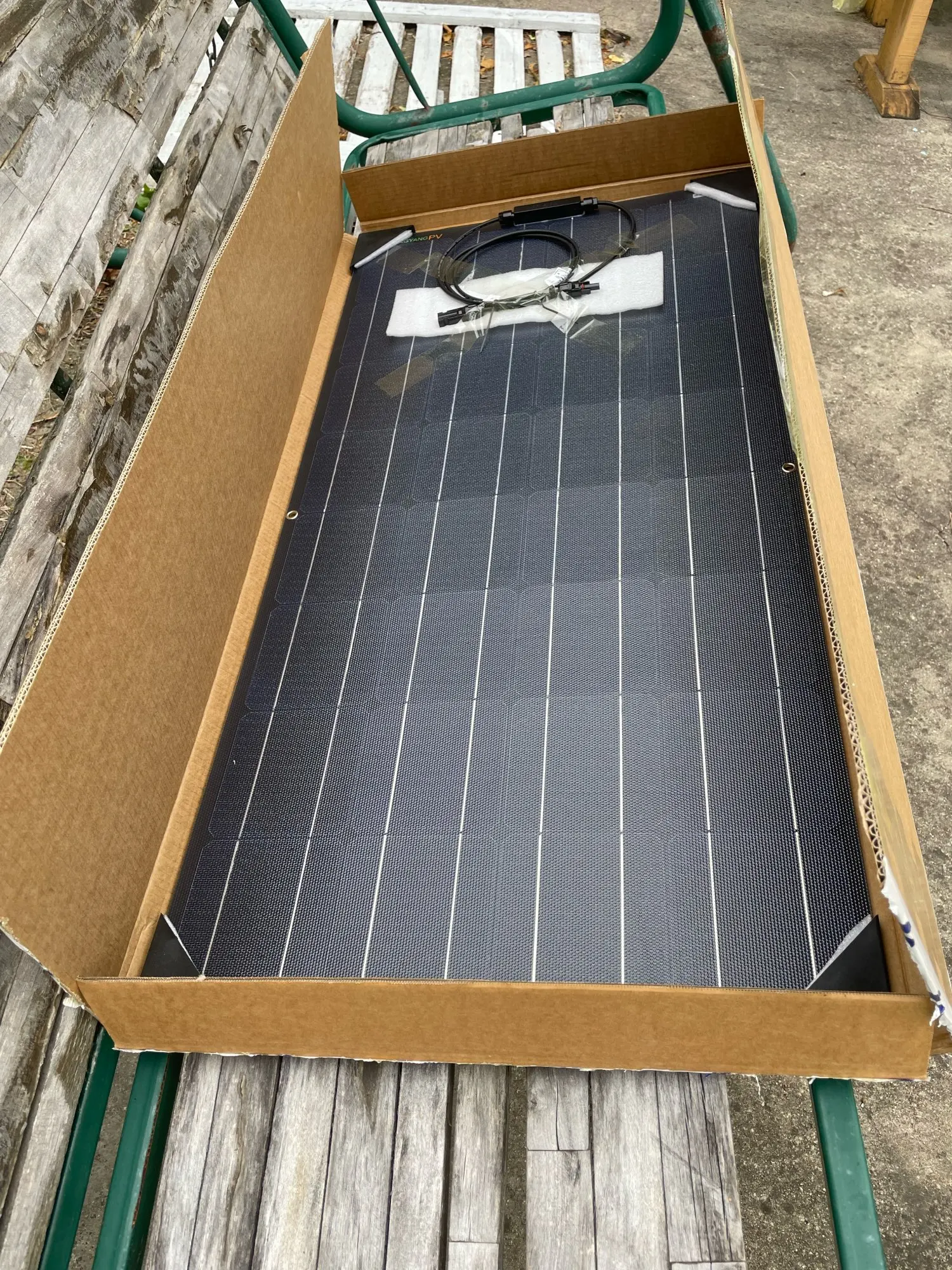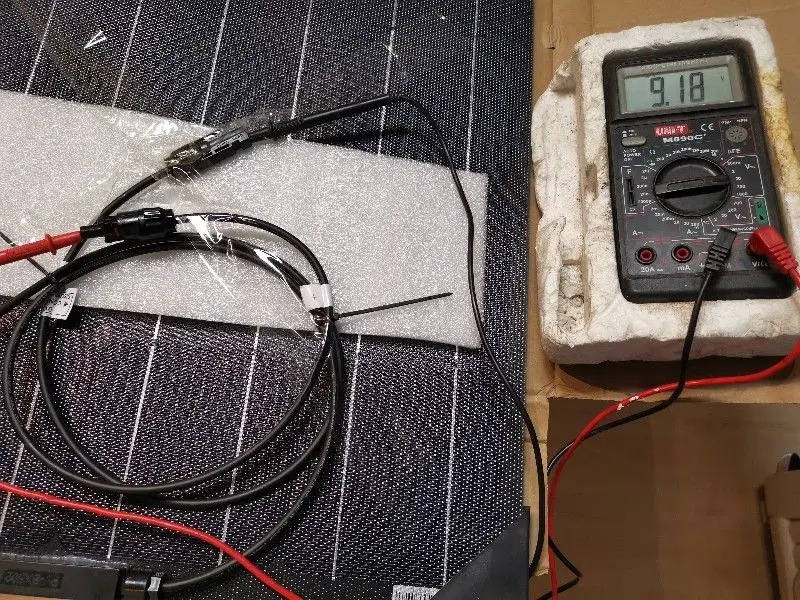 The panels arrived yesterday from Spain via Germany. Good packaging, light and with corner protection. Placed on the terrace they provided 34 V. (two in series) without sun because of the overcast sky. At full irradiation this morning they supplied 39 V. for some time. After about two hours, perhaps because of the heating, the voltage dropped to about 37 V. and then again to 36.7 V. This afternoon without direct sun they gave 35 V. The panels are extremely compact due to the ETFE and are of excellent construction. I am really satisfied and would buy more. Thanks seller.