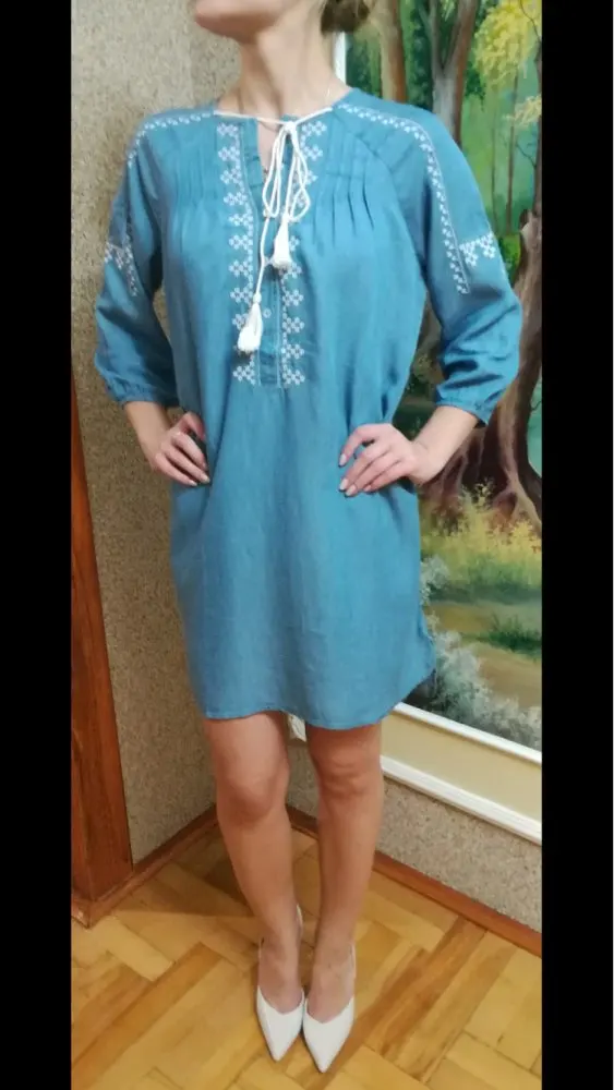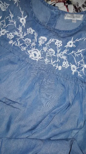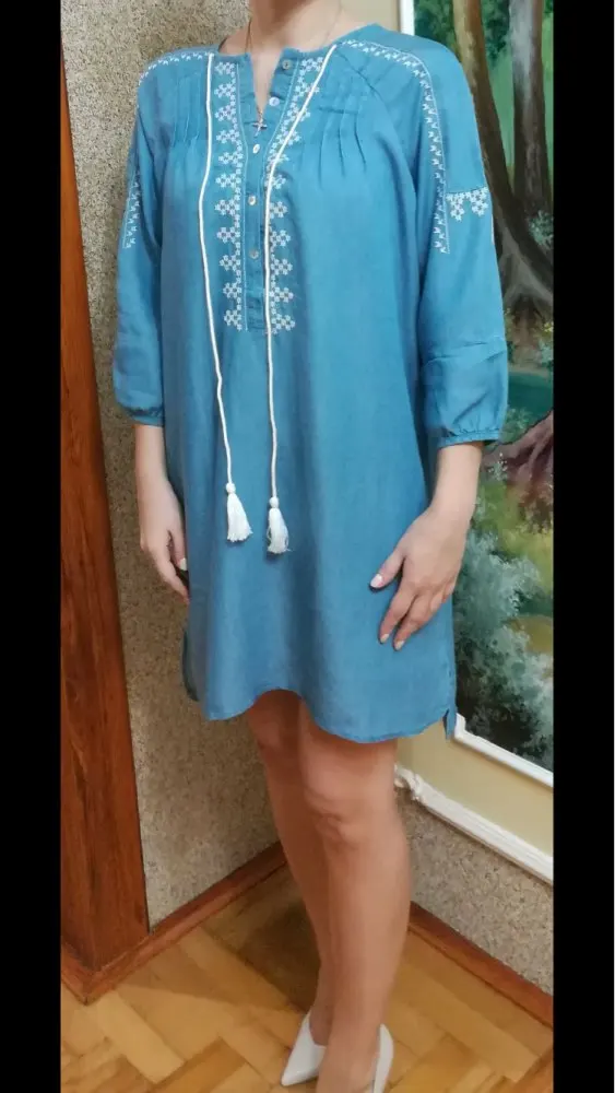 Ethnic Embroidery Denim Dresses Women Wrist Sleeve O-Neck Casual Shirt Dress Spring 2022 Plus Size Vestido Jeans Feminino