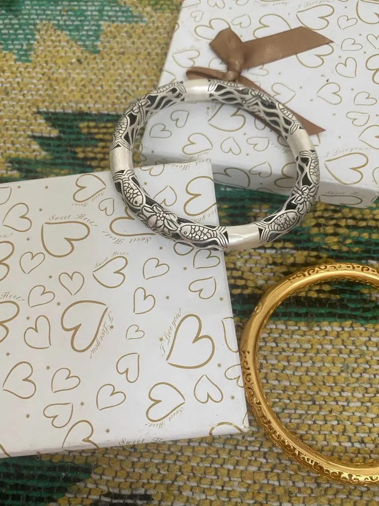 Ethnic Hollow Women Bracelets & Bangles 100% 990 Sterling Silver Bracelets For Women Vintage Flower Fish Indian Jewelry SB23