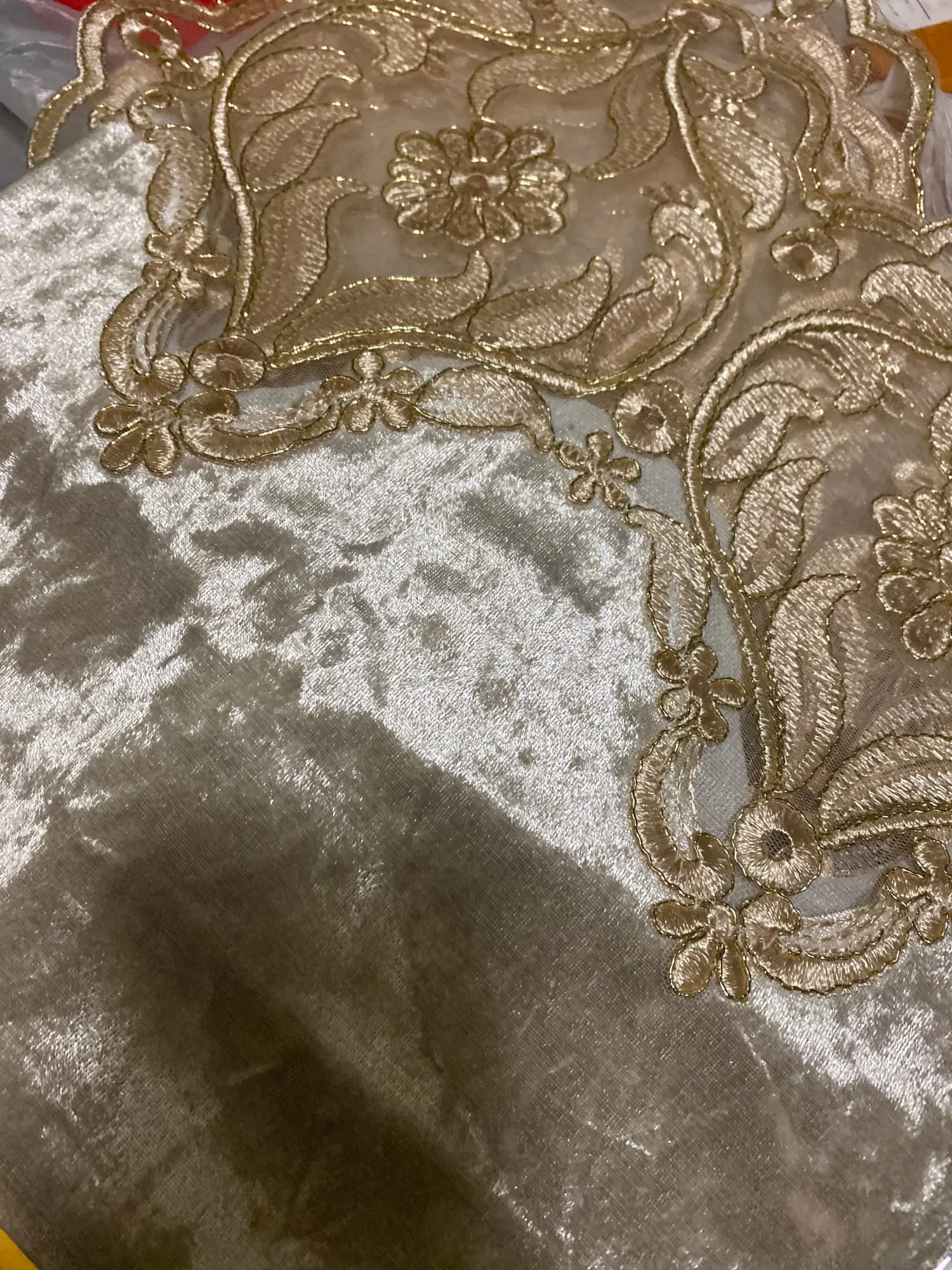 Europe luxury embroidered table dining table cover table cloth Golden velvet gold flower Lace TV cabinet tablecloth HM1868