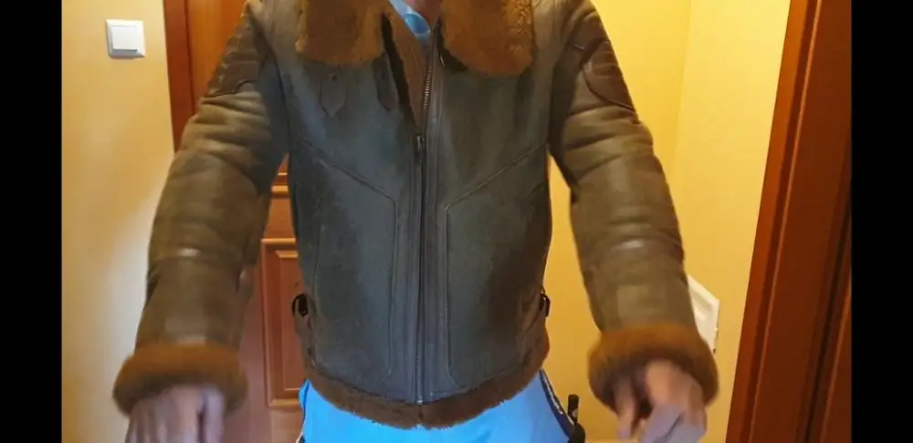 european size high quality super warm genuine sheep leather jacket mens big size B3 shearling bomber military fur jacket 8001