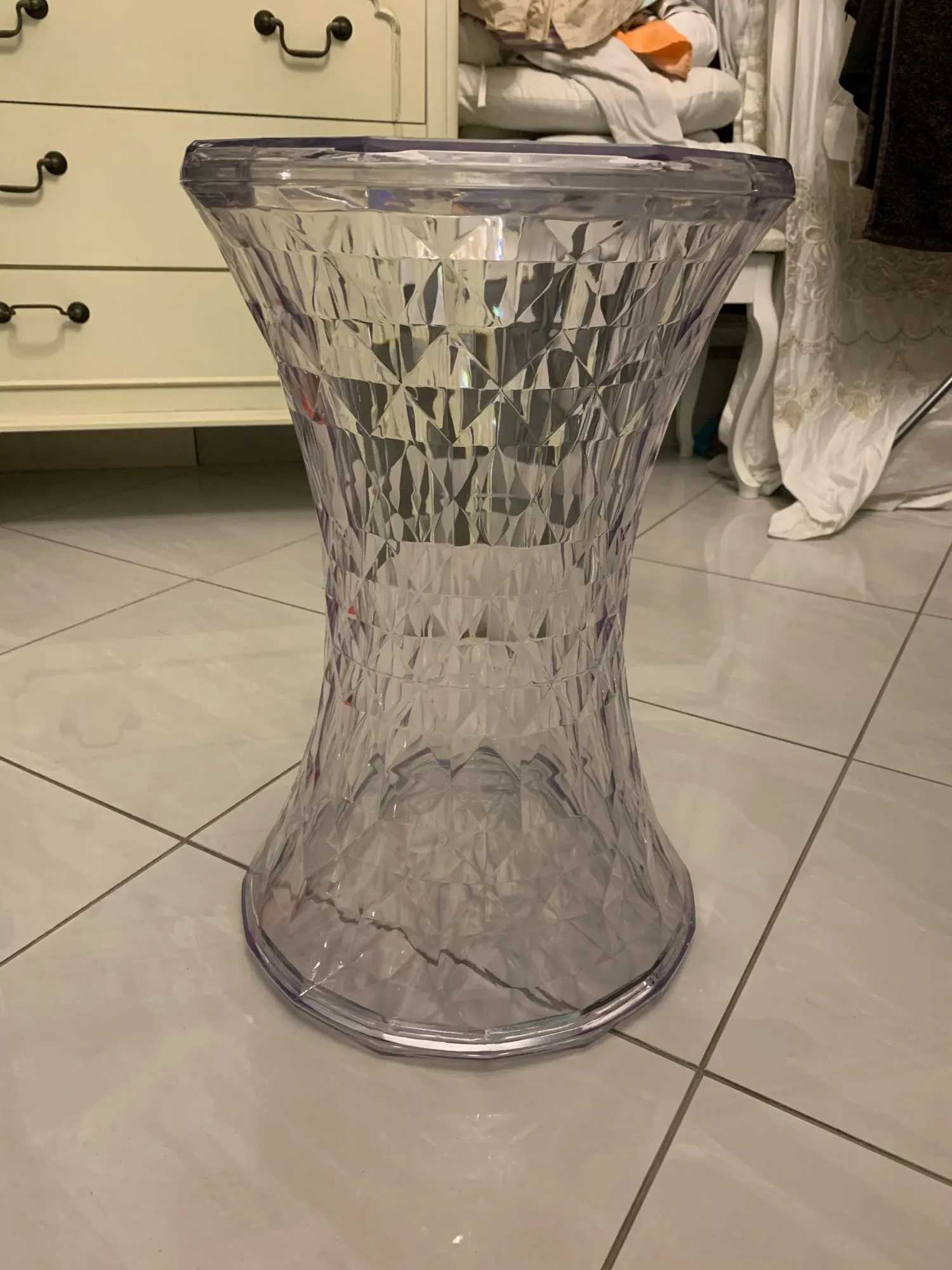 European Transparent Crystal Chair Stylish 3D Diamond Coffee Chairs Plastic Change Shoes Bench Designer Furniture