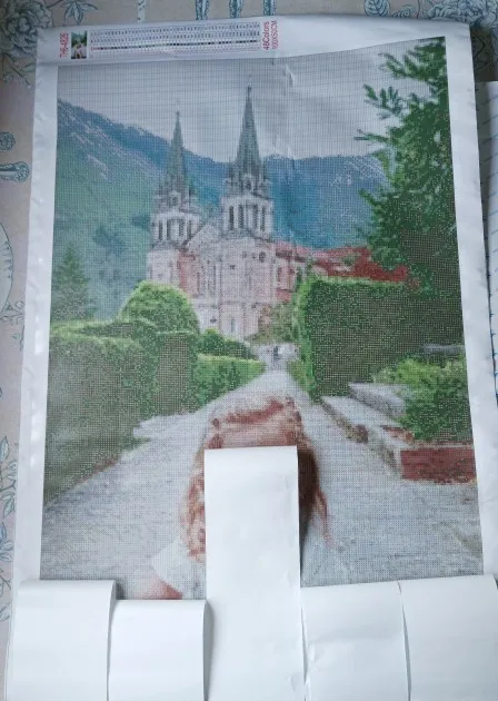 Still not finished 40x50, full round drills after four weeks. What significantly ramped up the difficulty were the symbols. Too many 0,Q, Ω, C, Ø or V,Y,¥,W or I,T,J and dark symbols on dark colours. I also received a painting I already have due to miscommunication. I suggest strongly you extra reconfirm what you want after uploading your image.
