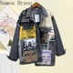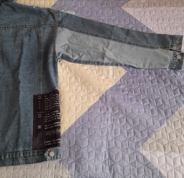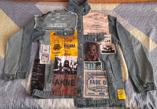 [EWQ] Vintage Full Sleeve Appliques Newspaper Pattern Large Size Black Denim Jacket Leisure Trend Coat 2022 Autumn New QL14001