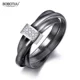 Exclusive 3 Layers Black/White Ceramic Crystal Wedding Rings Jewelry Rose Gold Stainless Steel Rhinestone Ring R19066