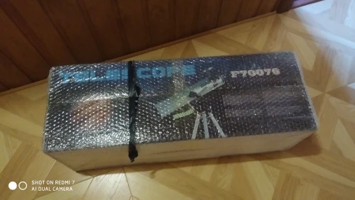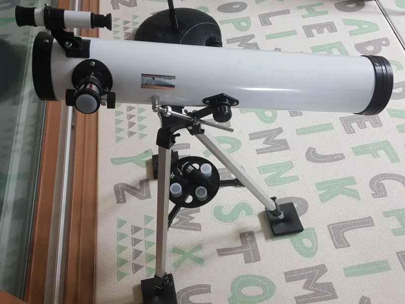 Да, все в порядке, получили телескоп. Настраивать сложно. Ну видно звезды, луну. Yes, it's all right, we got the telescope. It is difficult to configure. Well, you can see the stars, the moon.