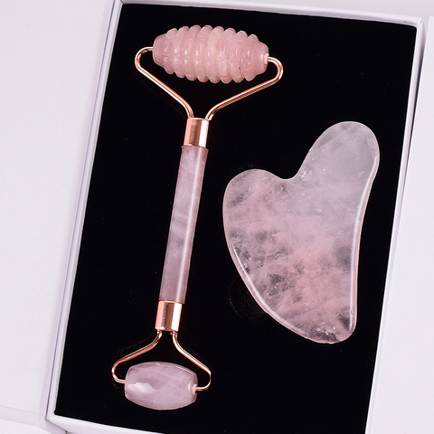 Face Care Massage Roller Natural Rose Quartz Gua Sha Tool Health Care Acupuncture Massager Neck Slimming Anti Wrinkle Cellulite